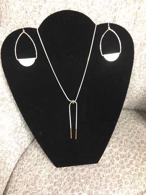 Enjoy these lovely costume jewelry pieces from the Aldina Collection directly from New York City! Shown here are a tear-drop necklace in white and yellow gold and a white and yellow gold pair of earrings. Perfect compliment to any outfit.