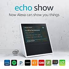 - Echo Show brings you everything you love about Alexa, and now she can show you things. Watch video flash briefings, Amazon Video content, see music lyrics, security cameras, photos, weather forecasts, to-do and shopping lists, browse and listen to Audible audiobooks, and more. All hands-free—just ask.