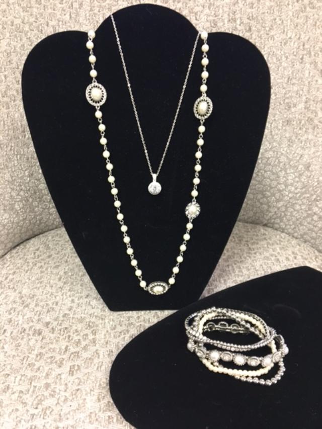 Prim, Emily, and Arm Party are the perfect collection for a special occasion, or break apart the collection for the more casual look. Prim has a touch of sparkle with pearls and can be worn long, or doubled up for a two layer shorter piece. When long, the Emily necklace is beautifully framed inside of Prim. Or, wear Emily as a stand alone piece. The crystal stone is set among a halo of smaller stones, totally on trend for today. Arm Party is a favorite bracelet set that can be worn as individual pieces or together for an “arm party” look. You can’t go wrong whether you are dressed up or having a casual day with this bracelet set.