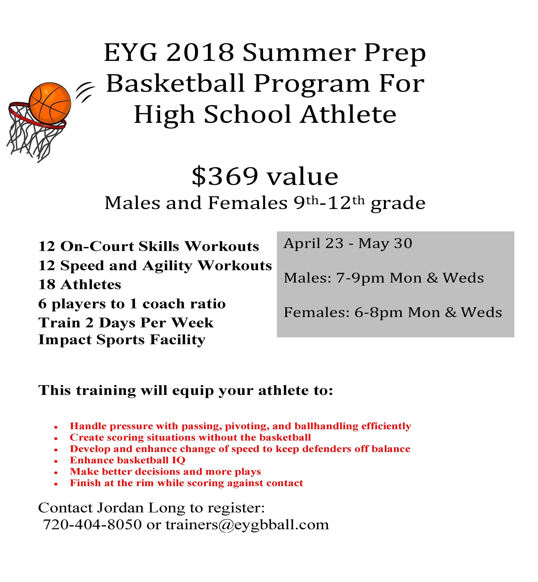 EYG 2018 Summer Prep Basketball Program For High School Athlete