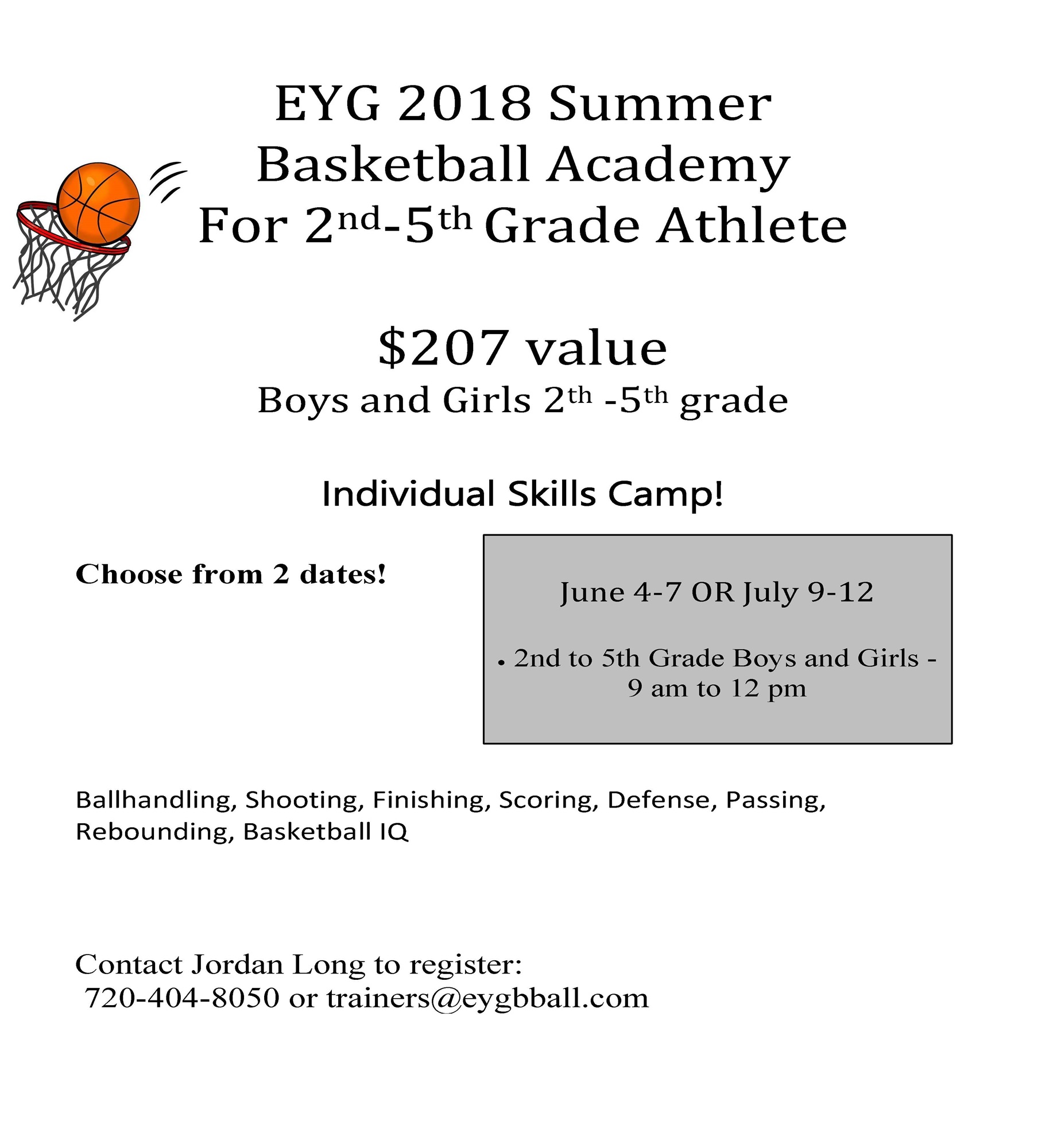 EYG 2018 Summer Basketball Academy For 2nd-5th Grade Athlete