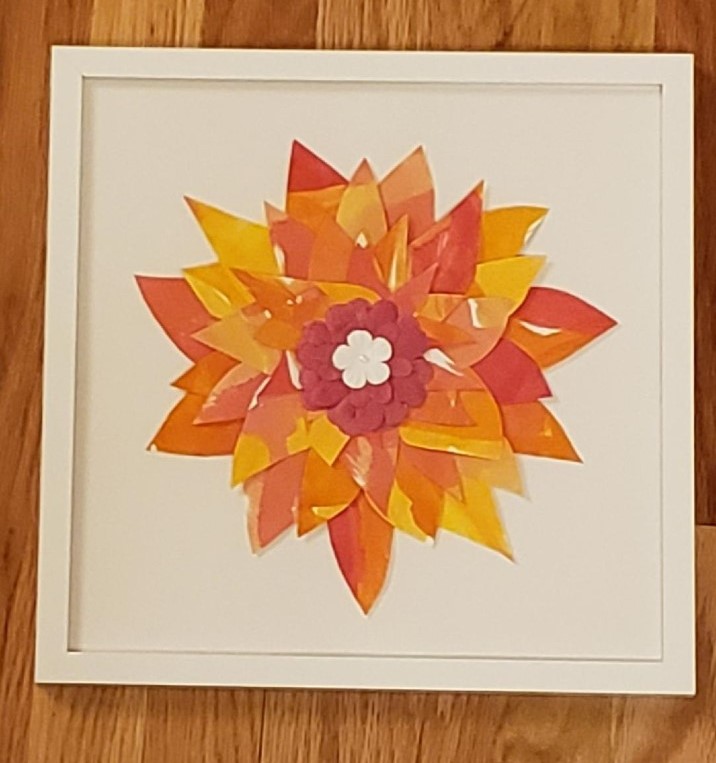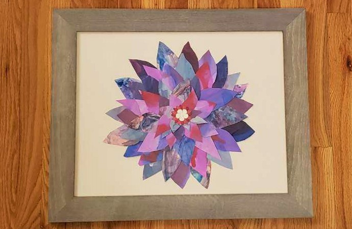 Piece 2 - “Beautiful Blossoms” God will forever be the universe’s greatest artist. Made in His image, that creativity flows through us with the Holy Spirit. God has blessed us with the power to use His creations as inspirations for our own. For this project, Mrs. Vannice's students explored examples of God’s intricate use of monochromatic and analogous colors in flowers. From there, they used liquid watercolor and water to explore using a wet on wet and wet on dry technique to mix, blend, and paint monochromatic and analogous colors right on the paper. Once the pages were dry, students traced and hand cut each and every petal. Then, they worked together to find shades and pieces that would accentuate the textures and colors on each. These flowers are a representation of the diverse beauty God blessed each of us with. Alone, we are beautifully and wonderfully made to be uniquely ourselves, but together, we become even more magnificent. Frame measures 13" x 13".