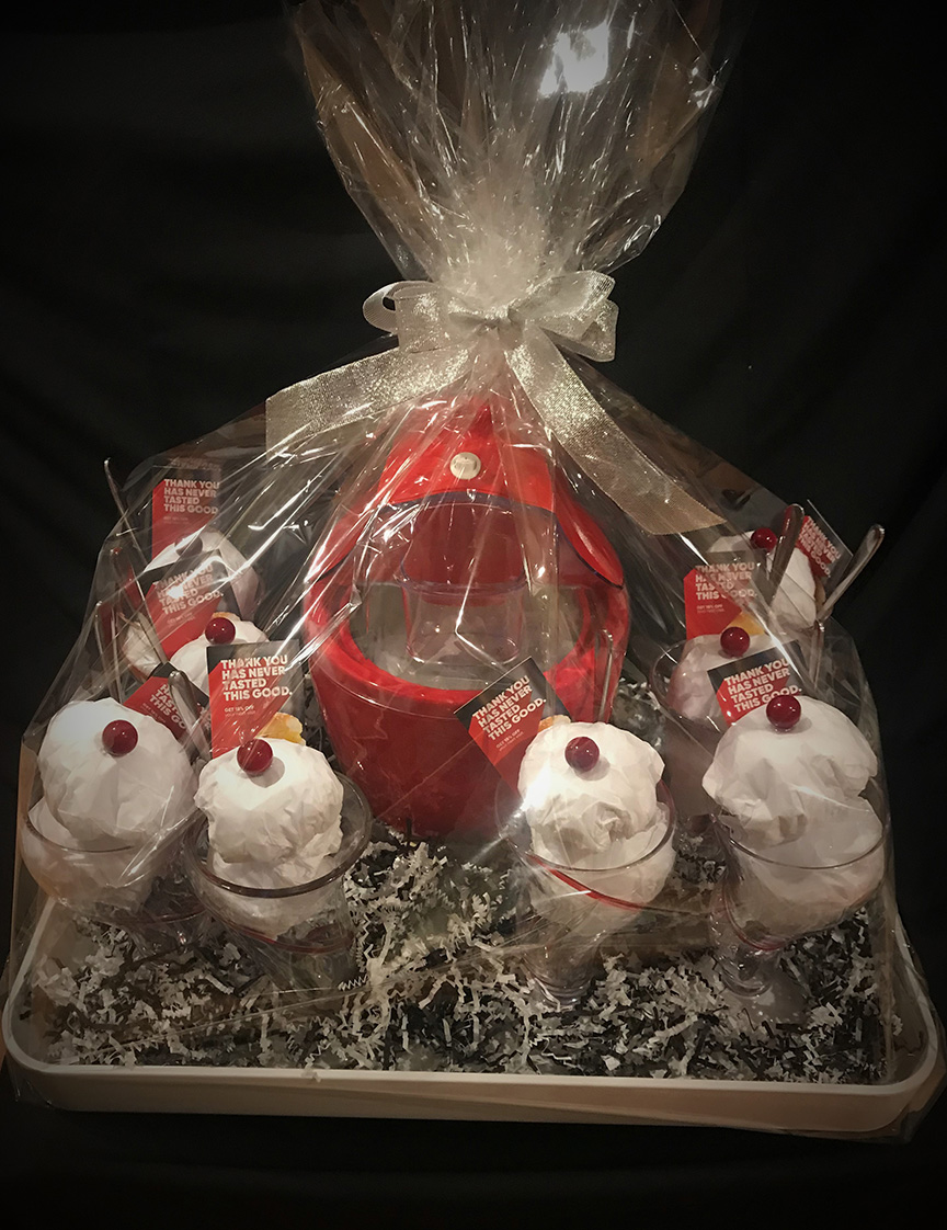 A yummy basket from Arvada local meat supplier, Edwards Meats, and also a Faith family! $50 gift certificate, beef jerky, sweet bourbon glaze, lemon/lime dill salmon rub, pineapple salsa, and multiple seasonings.